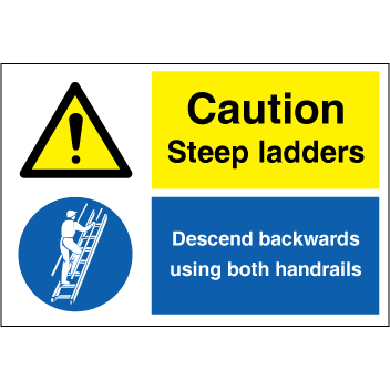 IMO Combi sign med den engelske tekst 'Caution - Steep ladders '